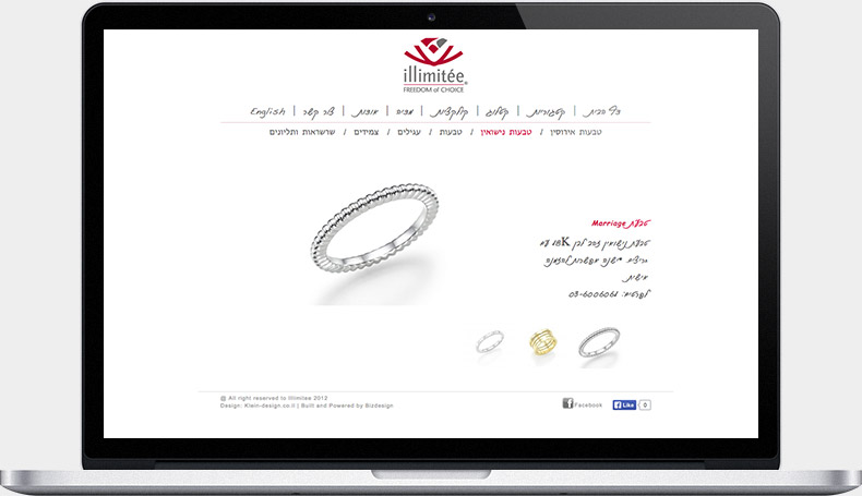 אתר תצוגה לתכשיטי אילימיטי, כולל גלריות וקטלוגים